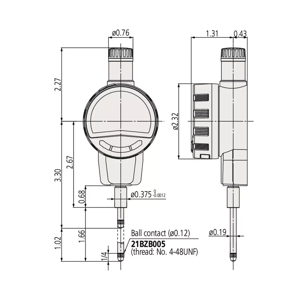 Reloj comparador DIGIMATIC tipo ANSI/AGD Inch/Metric, 1″, 0,0005″, Flat Back