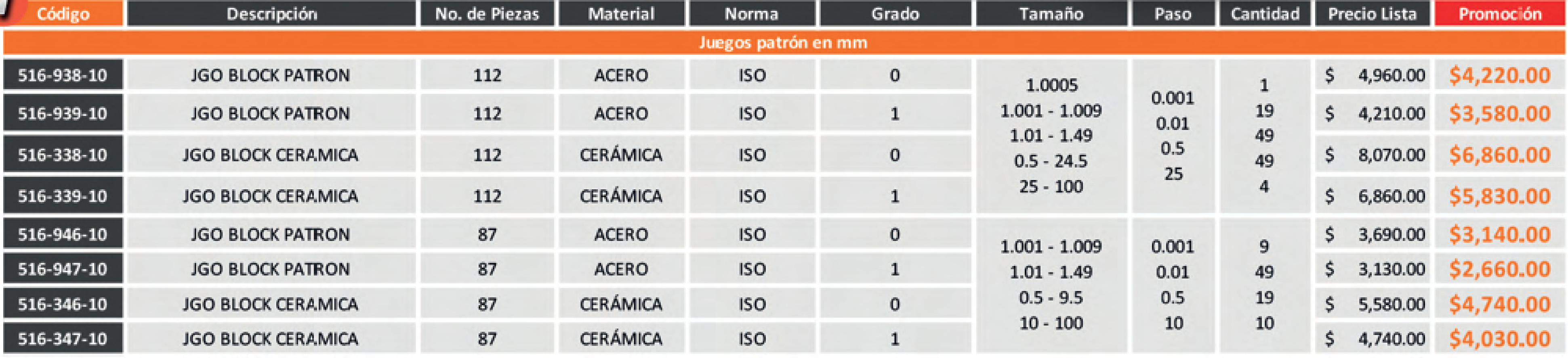 Cumplimiento con normas internaciones como ISO, JIS, ASME.