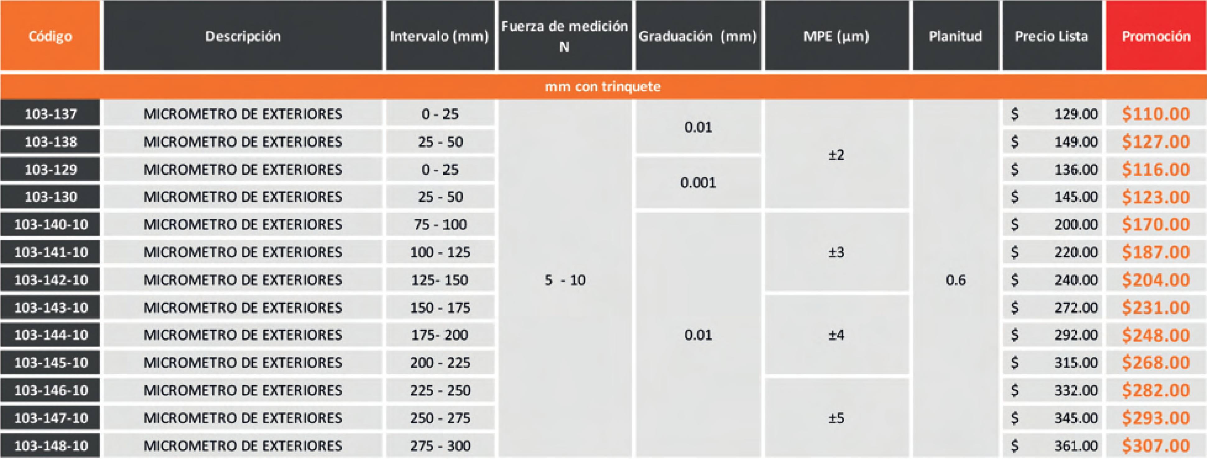 Equipado con trinquete para fuerza de medición constante y materiales de alta calidad que aseguran durabilidad.